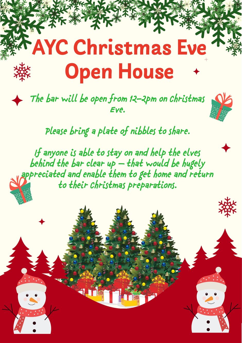 AYC Christmas Eve Open House - Wednesday 24th December 12-2pm